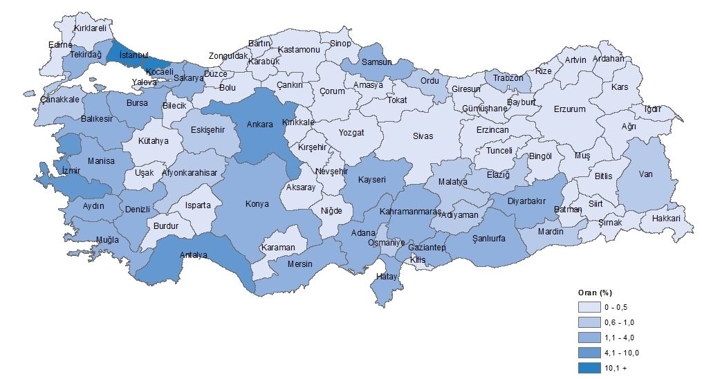 İstanbul’u sırasıyla %7,0 ile Ankara ve %6,0 ile İzmir takip etti.