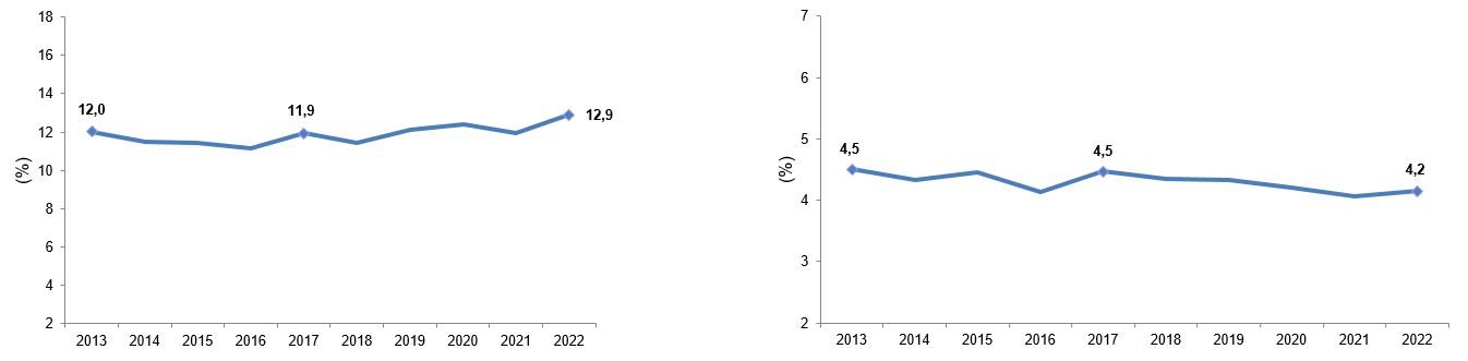 Girişimlerin ölüm oranı (%), 2013-2022 Ölen girişimler nedeniyle kaybedilen istihdam payı (%), 2013-2022