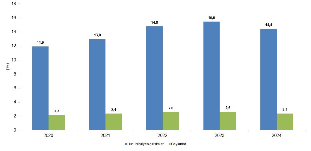 Hızlı büyüyen girişimler oranı 2024 yılında %14,4 oldu