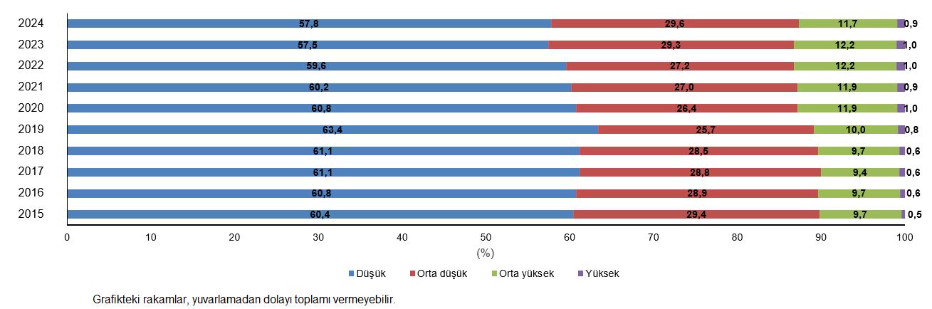 İmalat sanayinde 2024 yılında doğan girişimlerin %29,6’sı orta düşük, %11,7’si orta yüksek, %0,9’u ise yüksek teknoloji düzeyine sahip ürünleri üreten girişimler oldu.