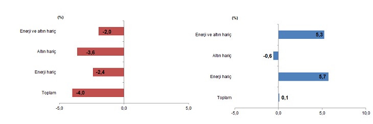 Ocak ayında enerji ürünleri ve altın hariç ihracat %2,0 azaldı, ithalat %5,3 arttı