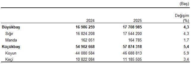 Hayvan sayıları, 2024-2025
