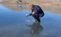 Buzun kalınlığını kontrol eden balıkçılar, Çıldır Gölü’ne ağ atmaya hazırlanıyor