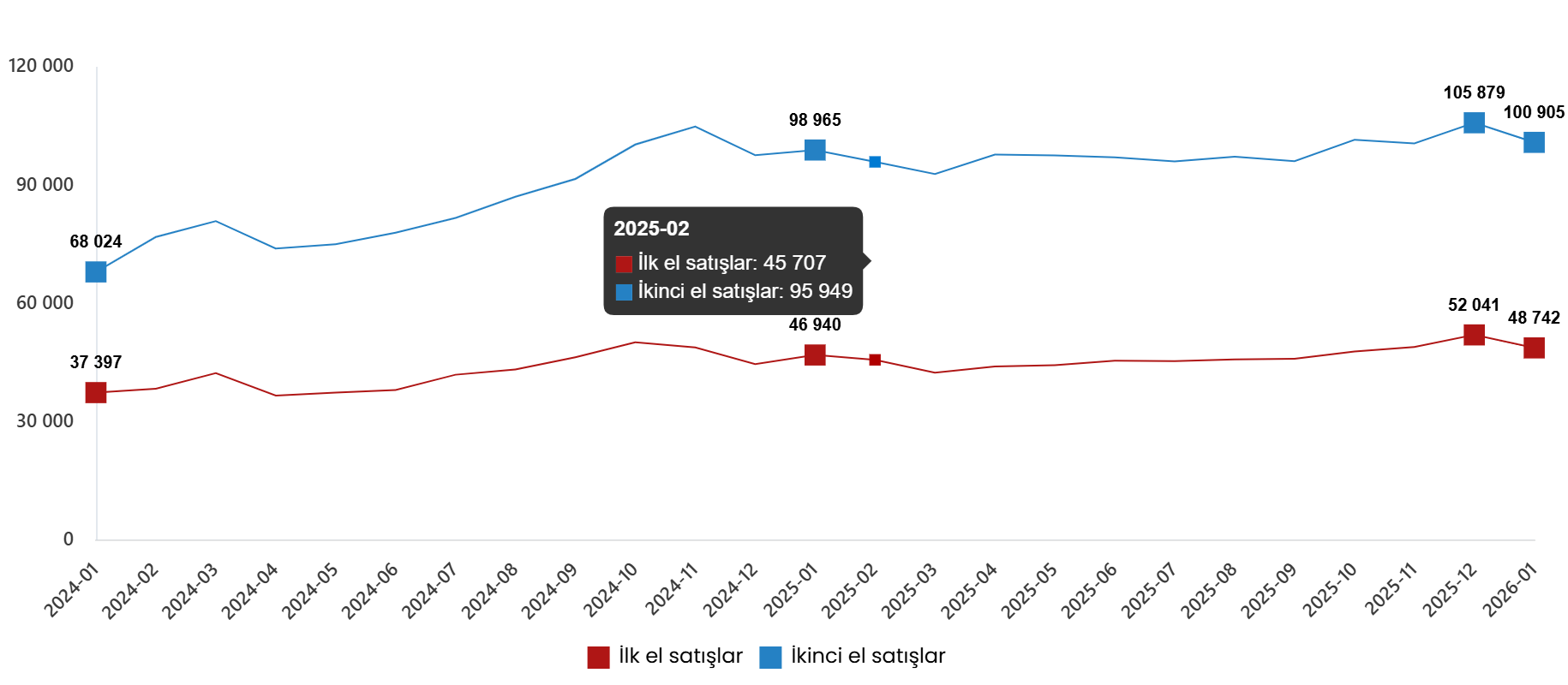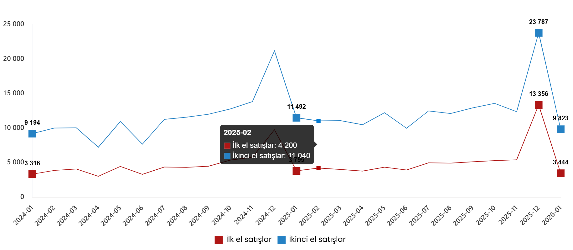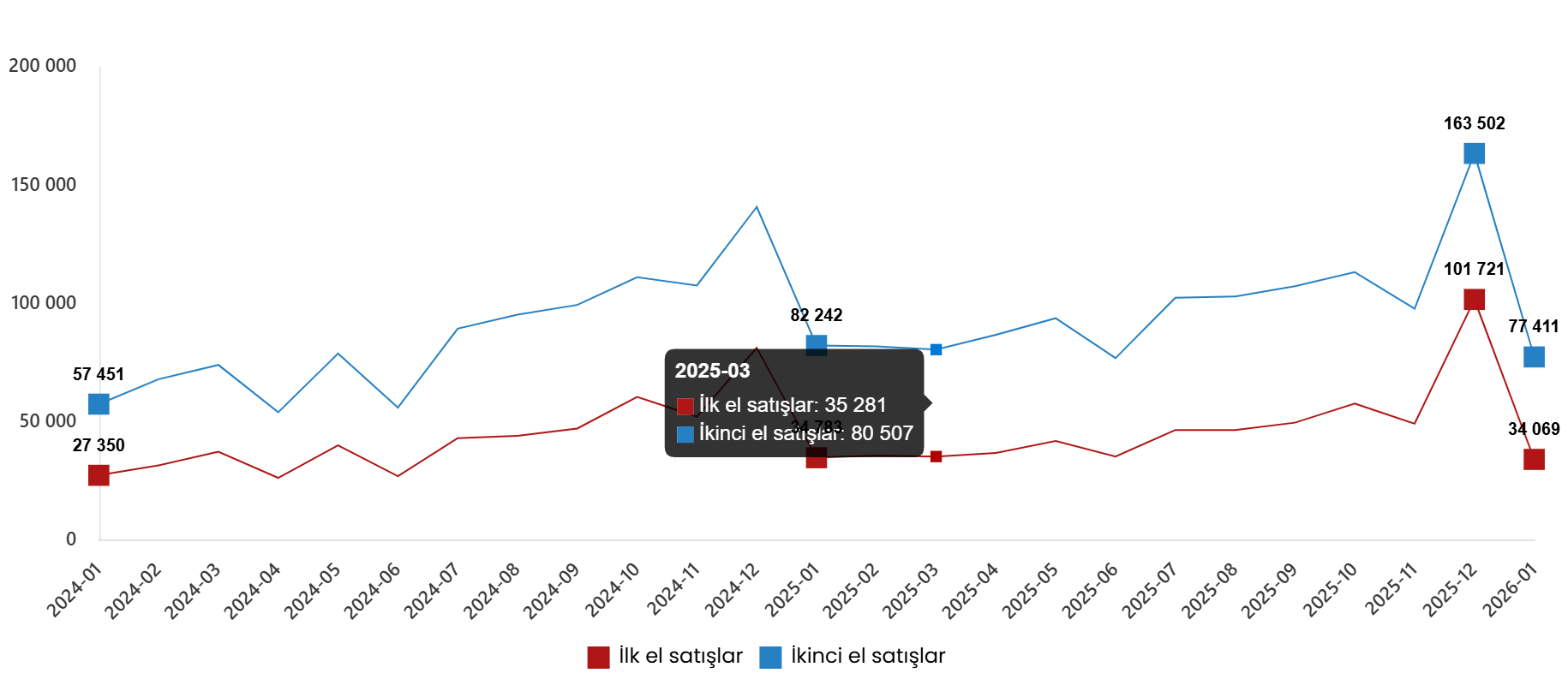| İlk el satış | 34 069 | 34 783 | -2,1 |