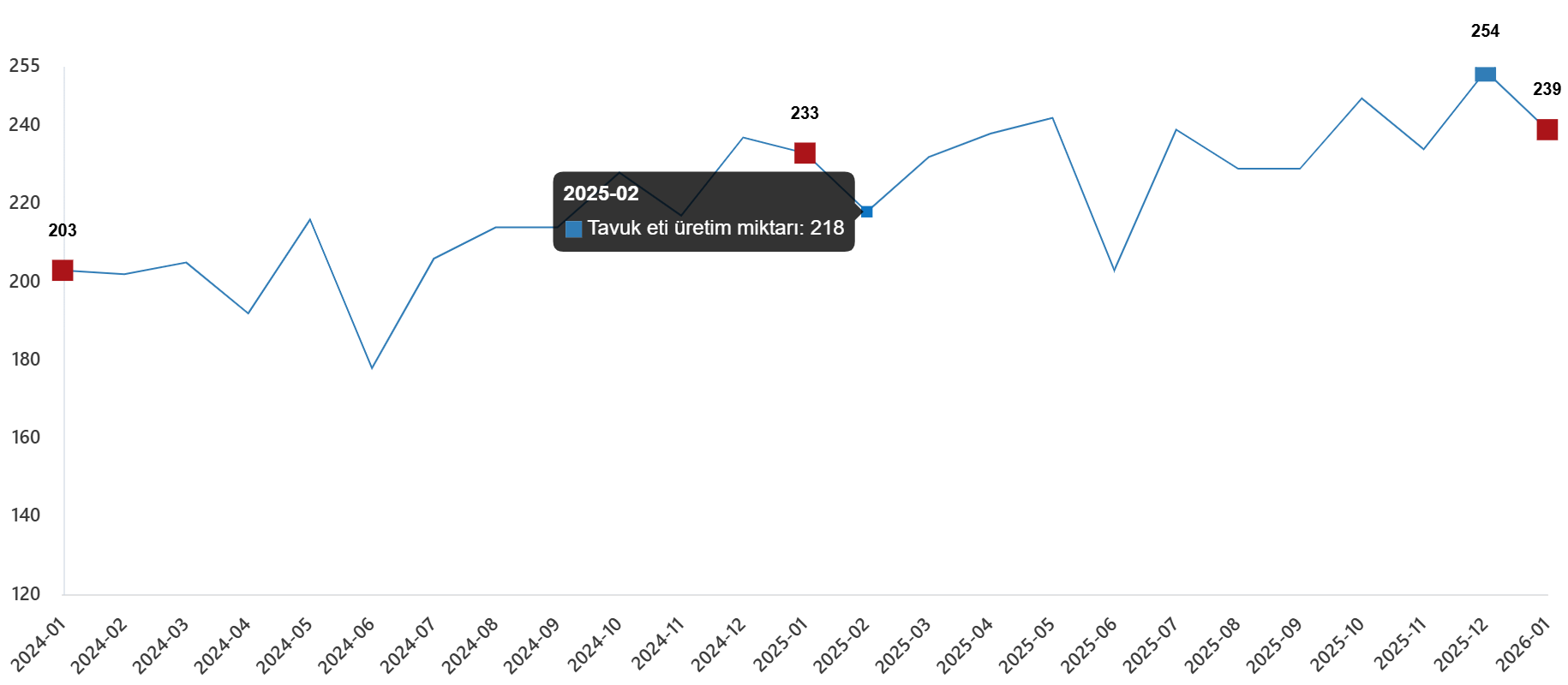 Tavuk eti üretim miktarı, Ocak 2026