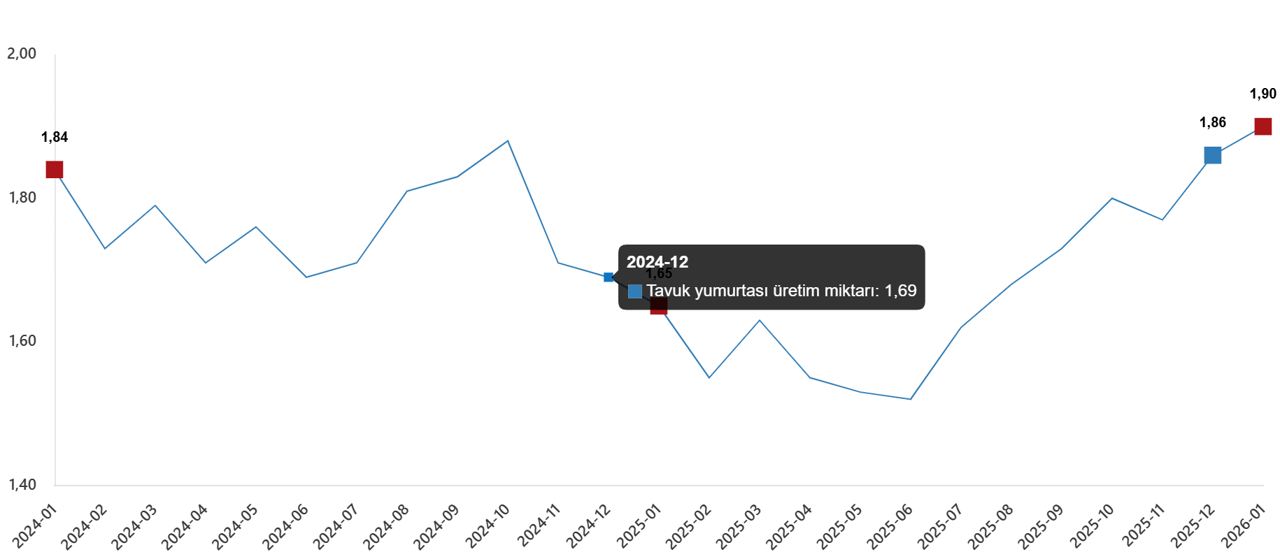 Tavuk yumurtası üretim miktarı, Ocak 2026