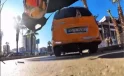 Motosikletin taksiye çarptığı kaza, kask kamerasında