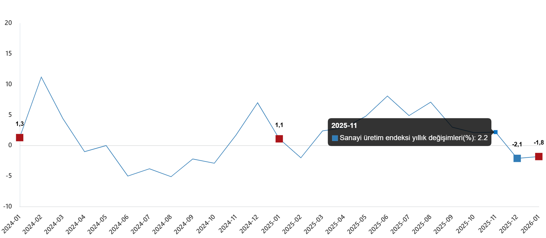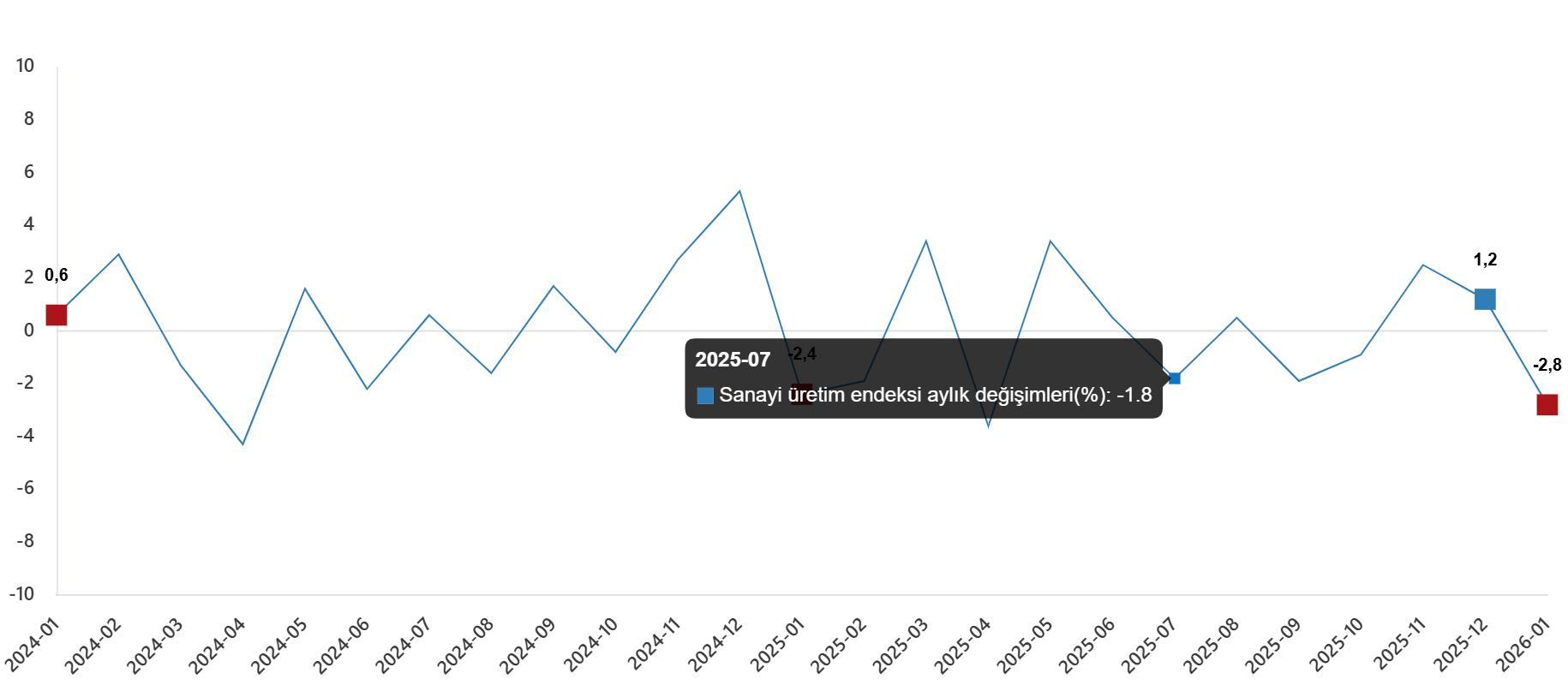 Sanayi üretim endeksi aylık değişimleri(%), Ocak 2026