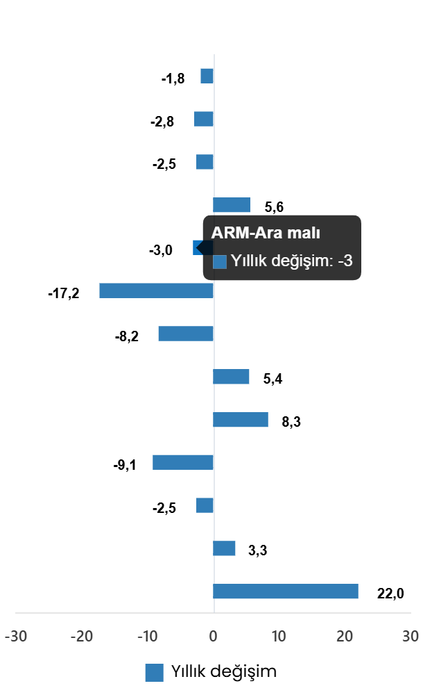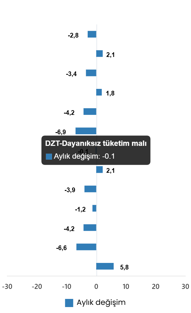 Sanayinin alt sektörleri incelendiğinde, 2026 yılı Ocak ayında madencilik ve taş ocakçılığı sektörü endeksi bir önceki aya göre %2,1 arttı, imalat sanayi sektörü endeksi %3,4 azaldı ve elektrik, gaz, buhar ve iklimlendirme üretimi ve dağıtımı sektörü endeksi %1,8 arttı.