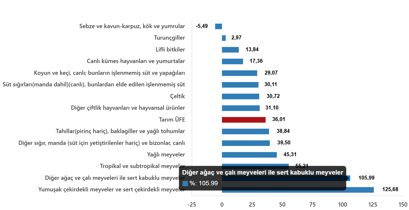 Tarım ürünleri üretici fiyat endeksi (Tarım-ÜFE) yıllık %36,01 arttı, aylık %3,06 arttı