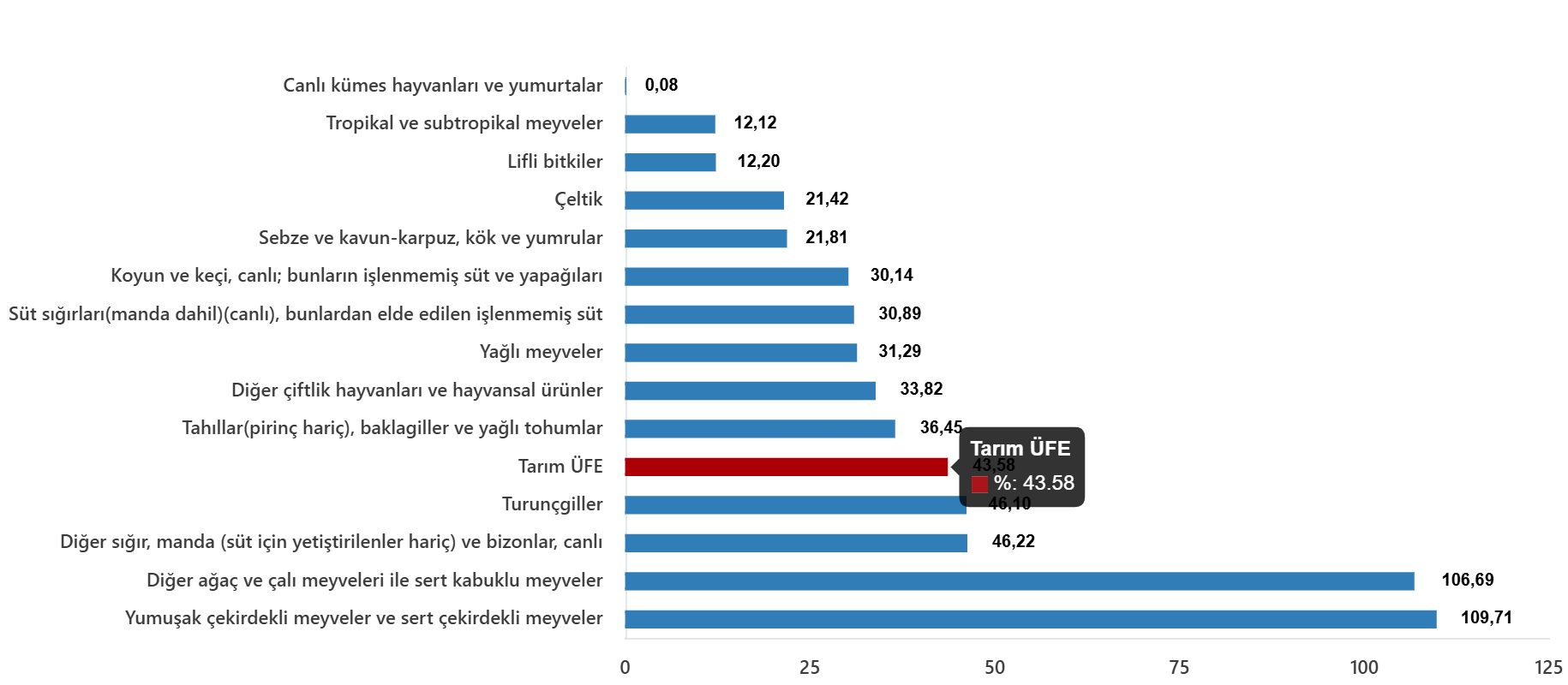 Tarım ürünleri üretici fiyat endeksi (Tarım-ÜFE) yıllık %43,58 arttı, aylık %8,46 arttı