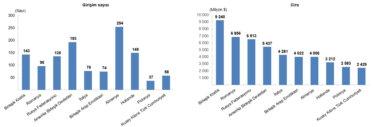 Romanya, yurt dışında kontrol edilen girişim sayısı açısından 96, elde edilen ciro açısından da 6 milyar 856 milyon dolar ile ikinci sırada yer aldı. Ciroda 6 milyar 513 milyon dolar ile üçüncü sırayı alan Rusya Federasyonu’nda kontrol edilen girişim sayısı 135 olarak gerçekleşti.