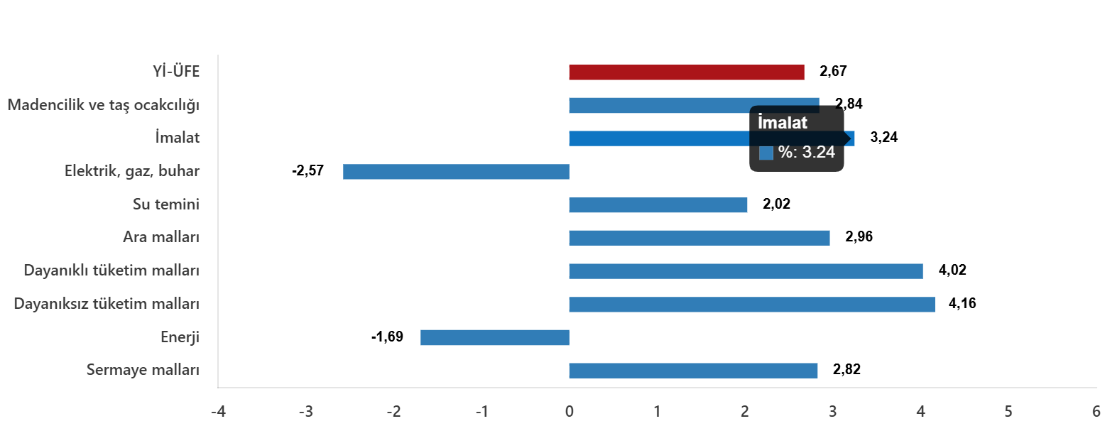 Yurt İçi Üretici Fiyat Endeksi (Yİ-ÜFE) yıllık %27,17 arttı, aylık %2,67 arttı